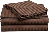 Luxor Treasures 300 Thread Count Stripe Sheet Set, Olympic Queen, Mocha