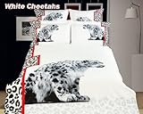 White Cheetahs, 4 PCs Animal Themed Bedding, Twin Size Egyptian Cotton Duvet Cover Set in Gift Box by Dolce Mela Fine Linens Bed in a Box, Boys or Girls Dorm Room Bedding Set, Birthday Housewarming or Anniversary Gift Idea, DM431T